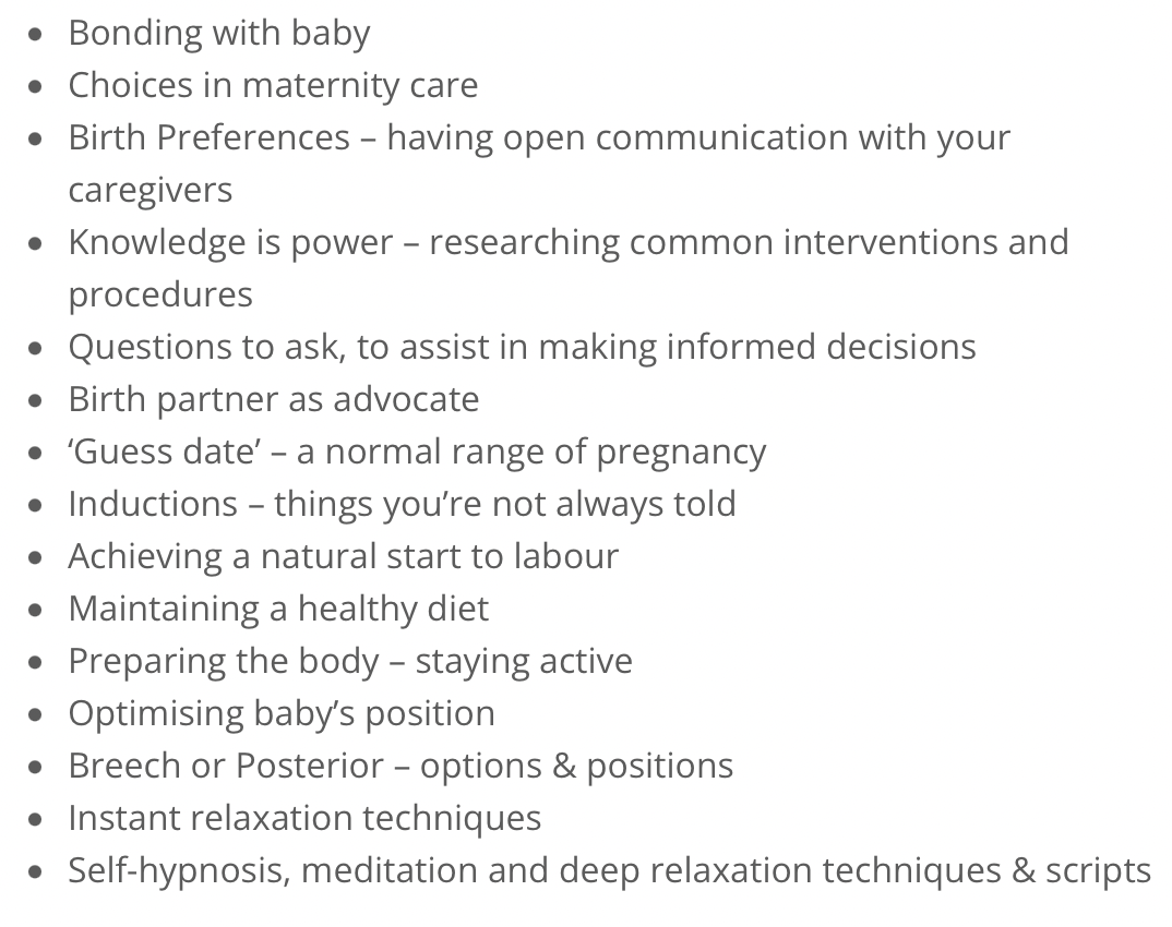 By the end of the ‘Positive Birth Program’ the birthing person and their support person will have the education and all of the tools for a positive, empowering birth. You will be provided with a booklet including a personalised link to online resources such as Hypnobirthing practice tracks and videos.